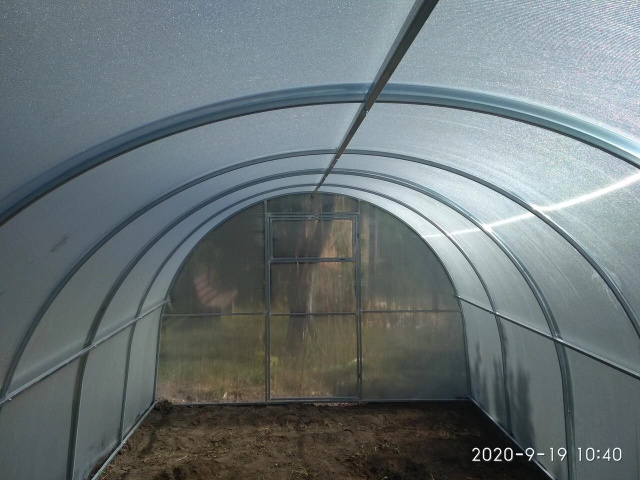 Поликарбонат не пропускает УФ-излучение, что благотворно сказывается на растениях и оборудовании, устанавливаемое в теплице, а также рассеивает свет, благодаря чему ускоряется рост растений и время созревания плодов. Материалы теплицы не меняют своих свойств в широком диапазоне температур (от - 50 до + 50 градусов Цельсия), что делает ее пригодной для эксплуатации в разных климатических зонах.
